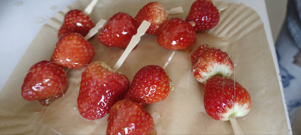• 草莓:香甜多汁,糖衣亮澤但易化,需低溫保存;