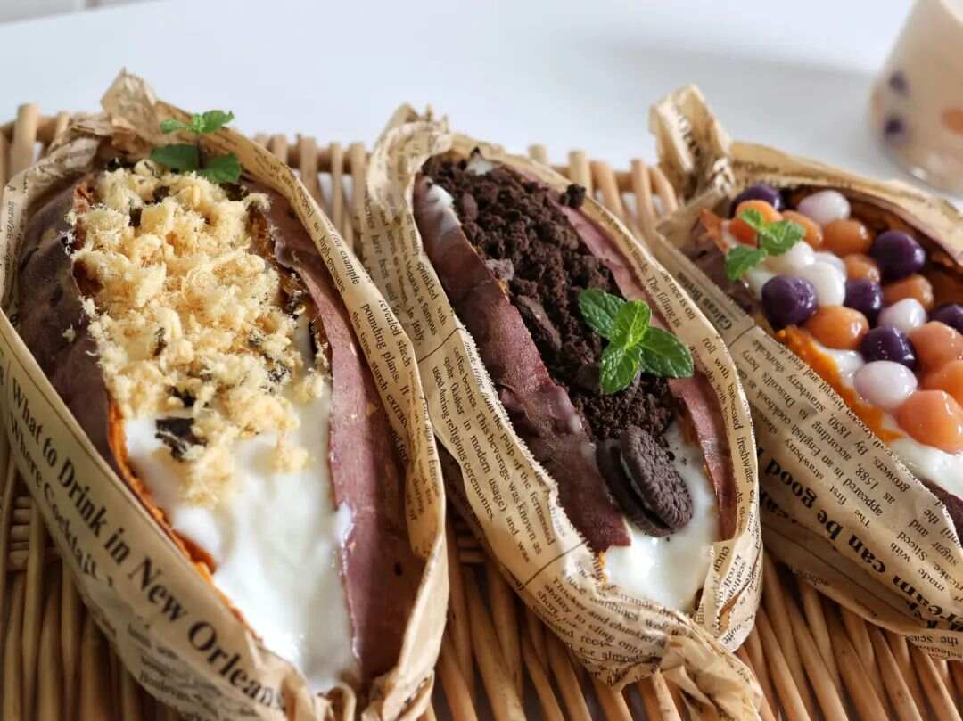 花式烤地瓜,就是在傳統(tǒng)烤地瓜的基礎(chǔ)上,進(jìn)行創(chuàng)新——外皮焦香、內(nèi)里綿軟,再加上多種配料搭配,讓人一口下去驚喜不斷。
